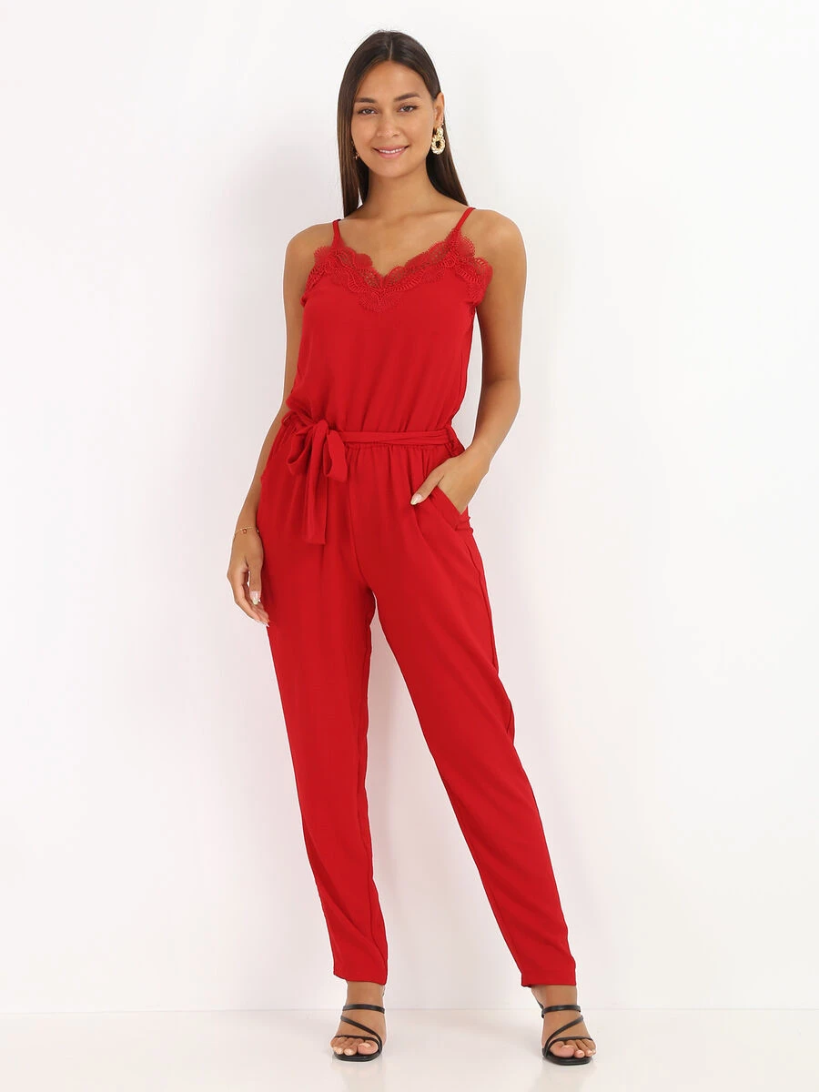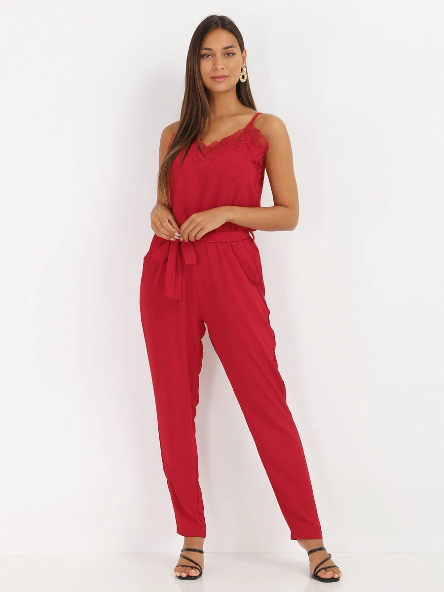 Combinaison à décolleté en V et en dentelle .