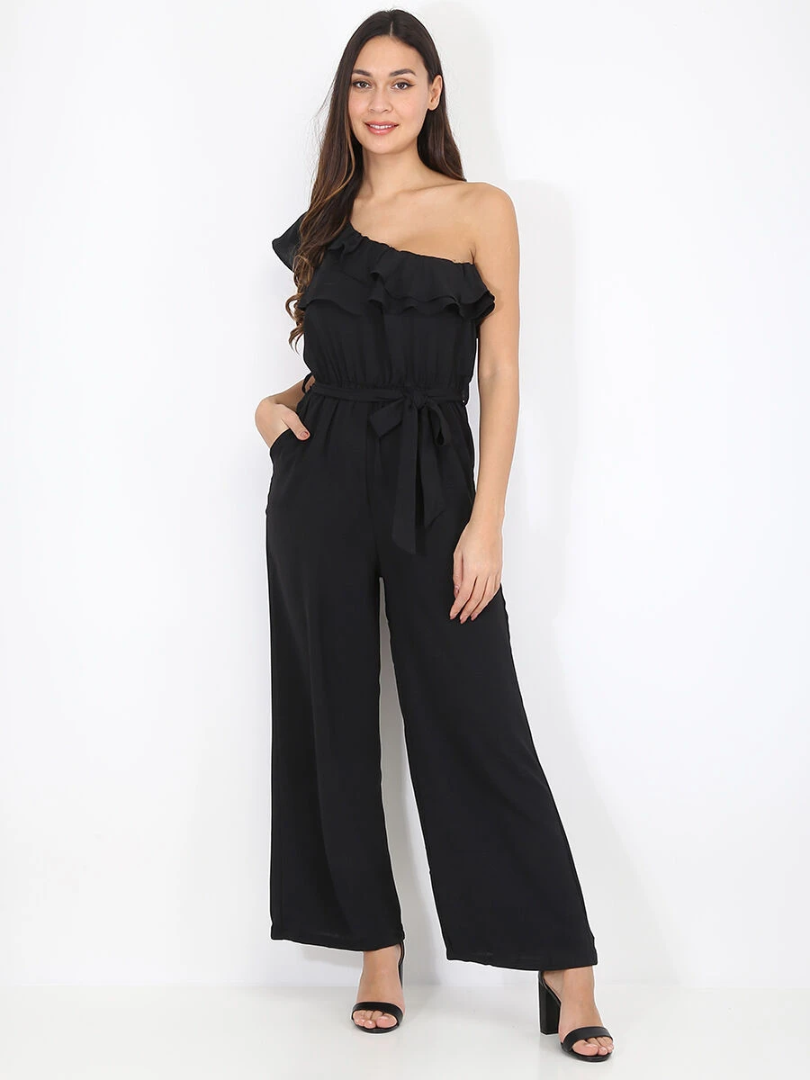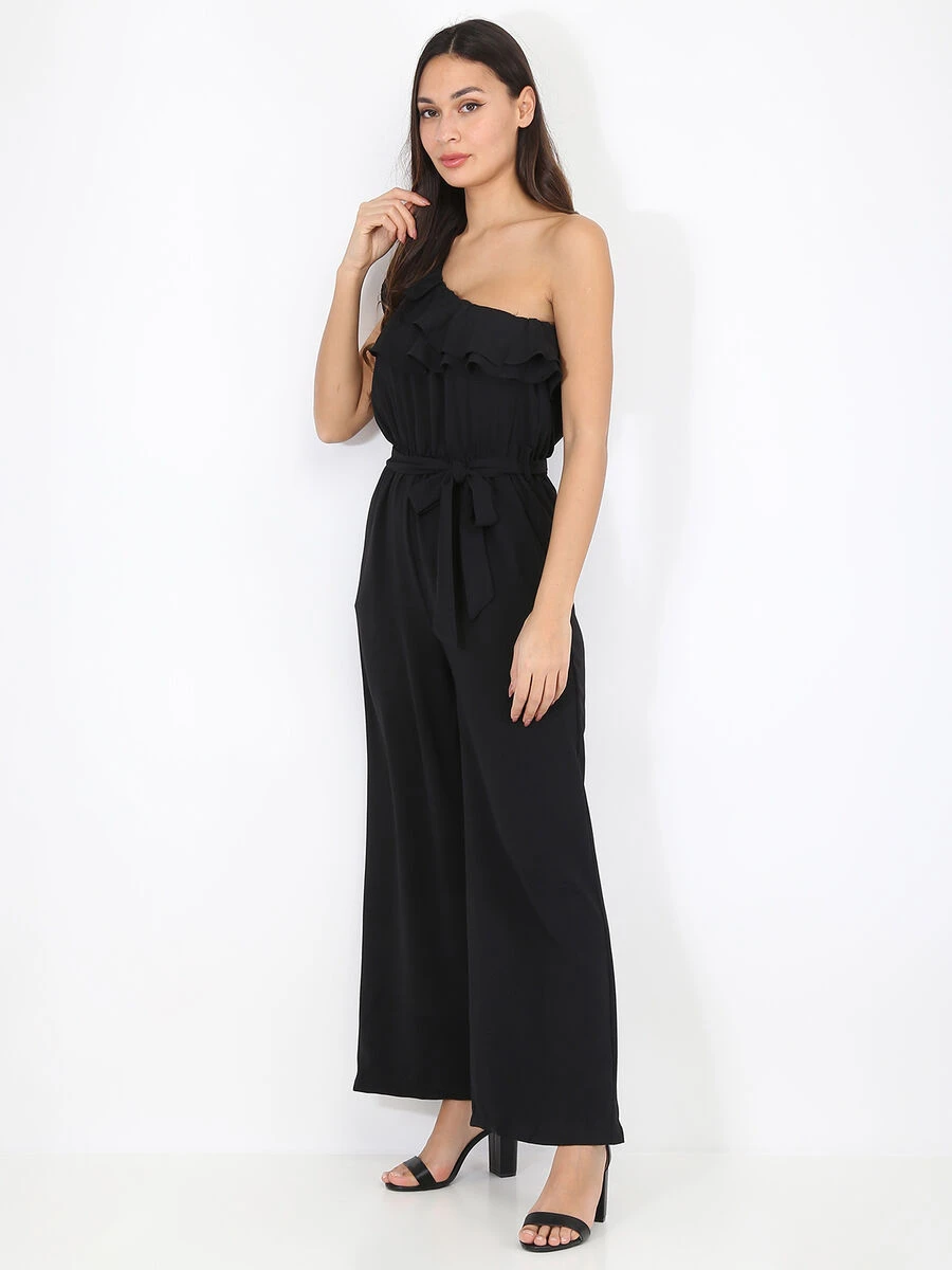 Combinaison fluide asymétrique. Encolure avec élastique et volants.