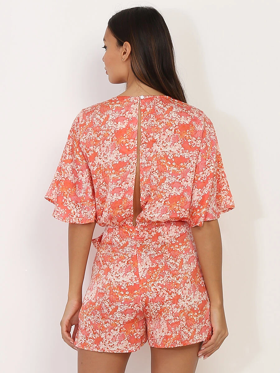 Combinaison short à effet portefeuille avec imprimé fleuri.
