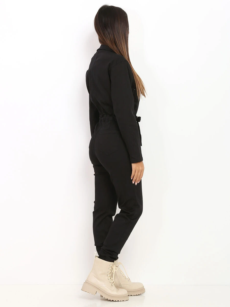 Combinaison noire style utilitaire à fermeture glissière.