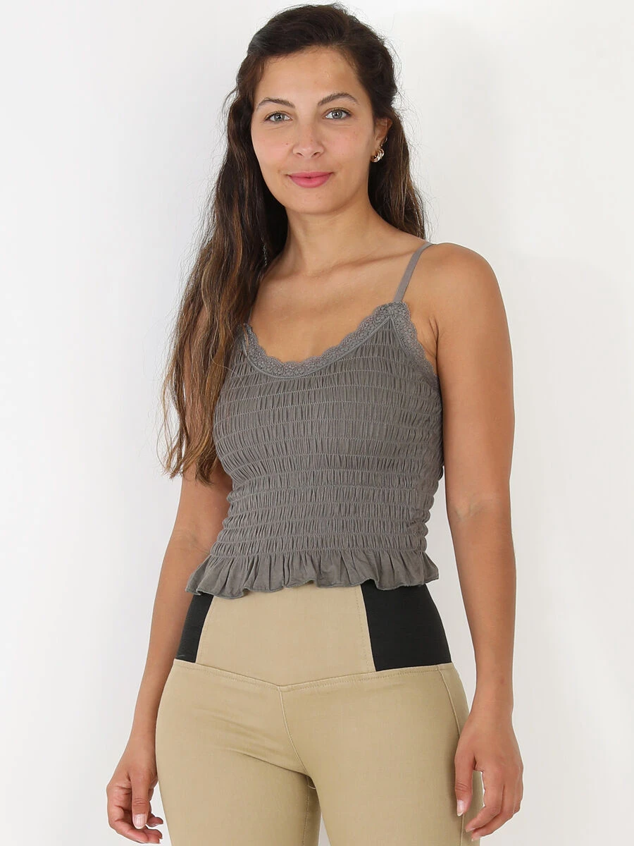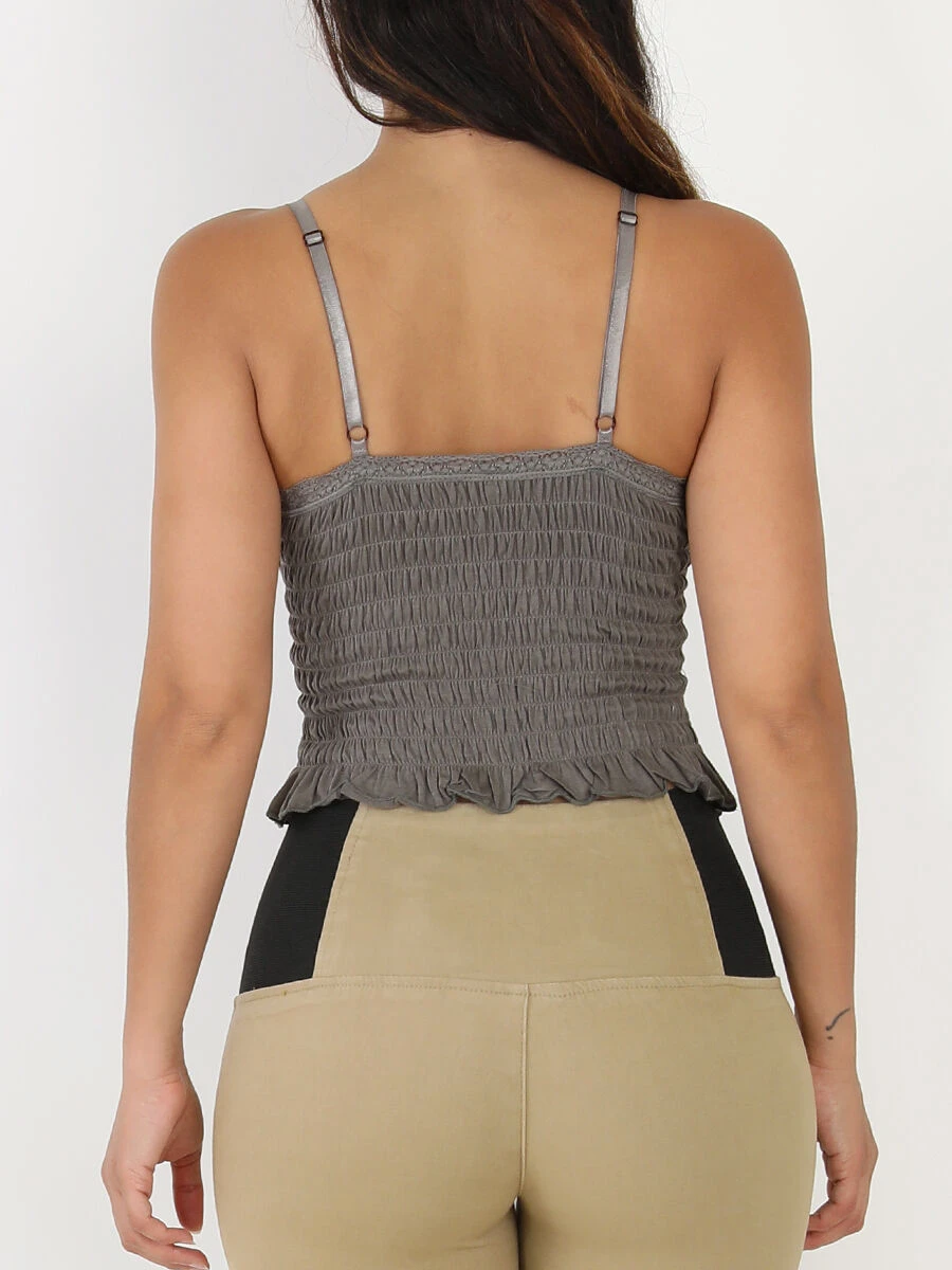 Top court smocké avec volants sur le bas.