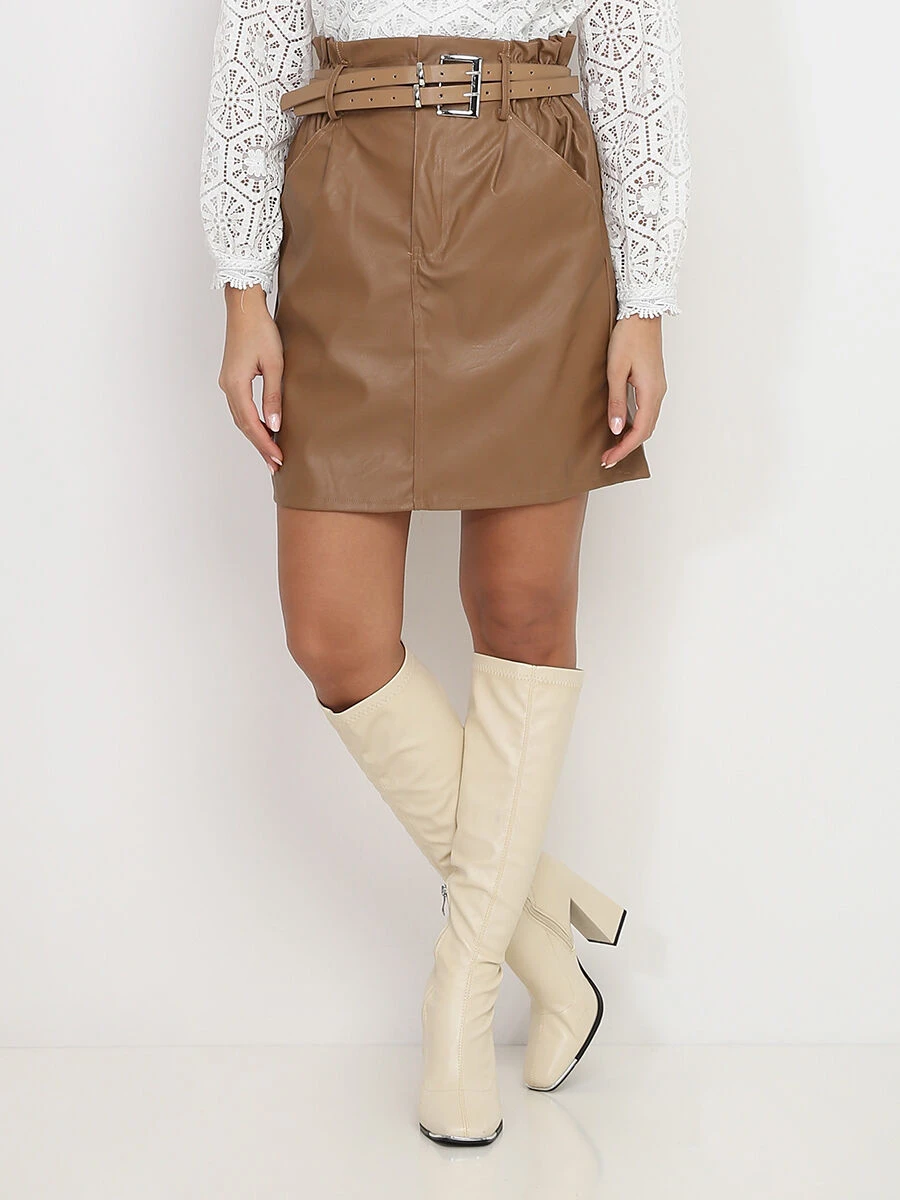 Vous serez canon avec cette jupe en simili associée avec un chemisier léger et de belles bottes
