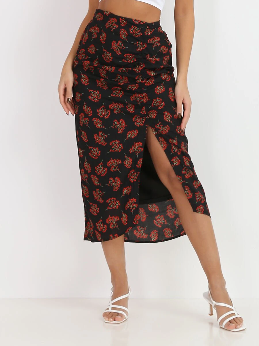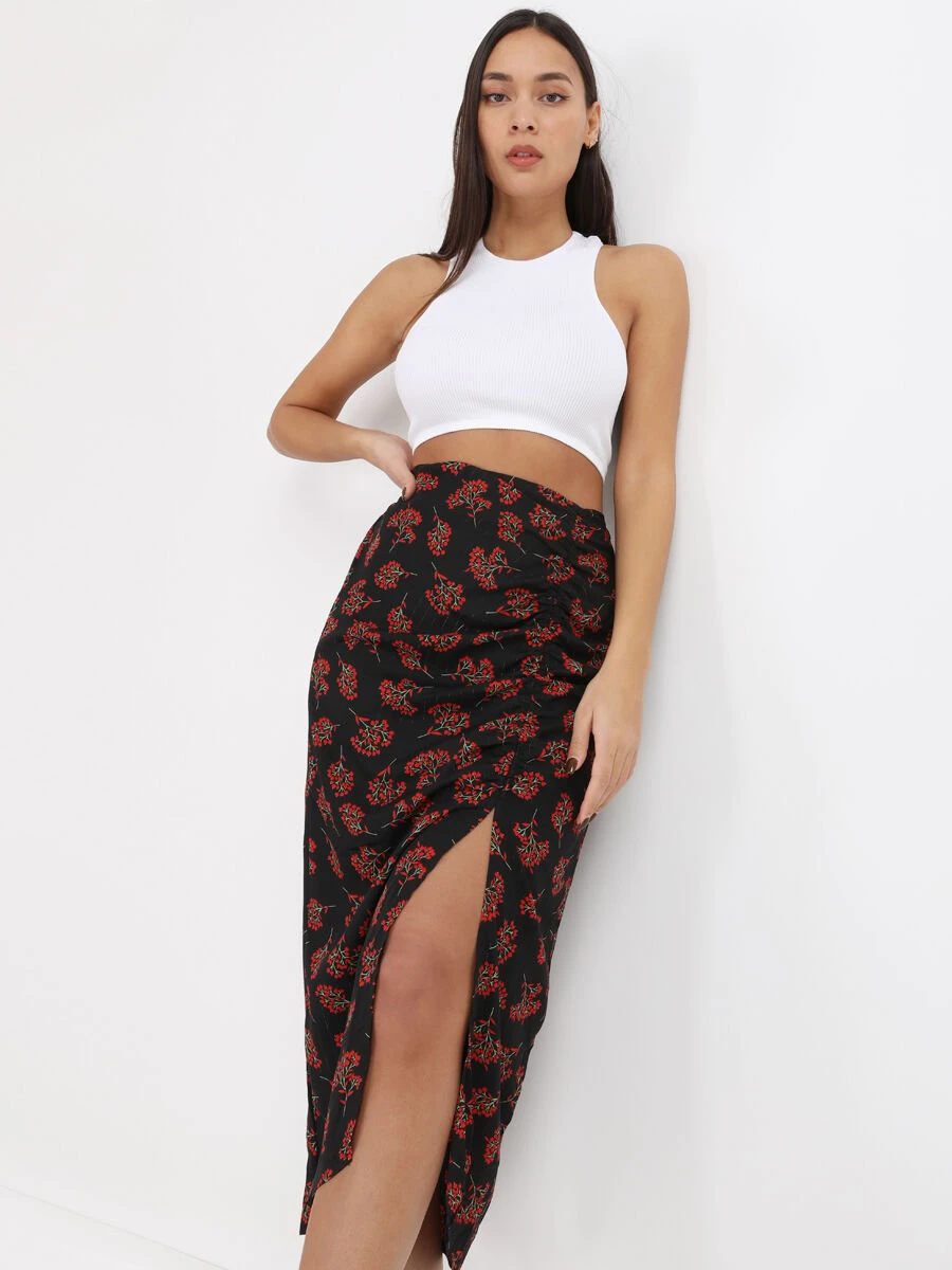 Jupe Mi-longue à Imprimé Fleurs