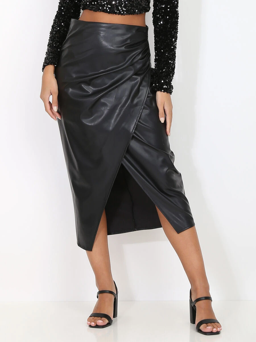 Jupe en simili plissée style portefeuille.