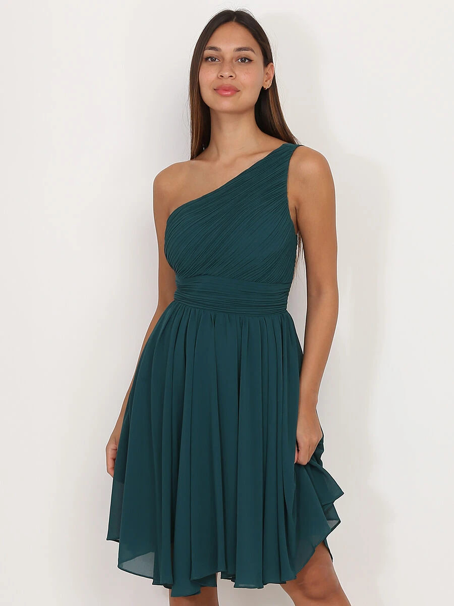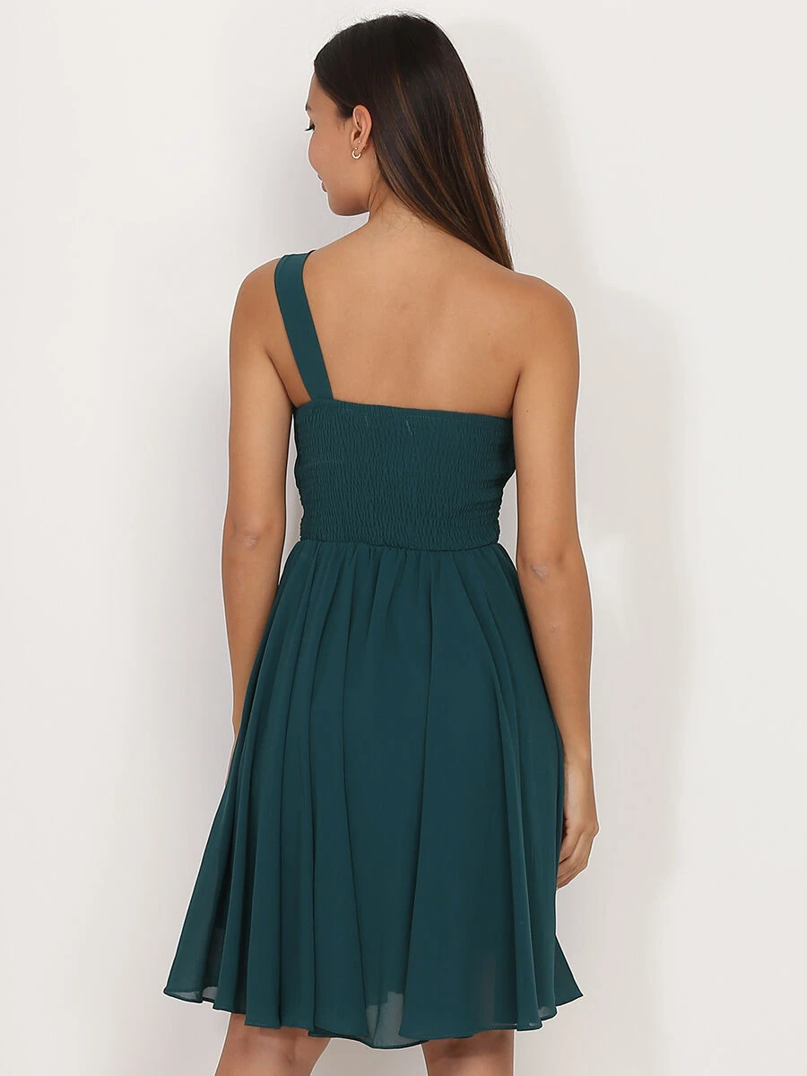 Modèle à enfiler avec dos smocké et jupon transparent évasé.