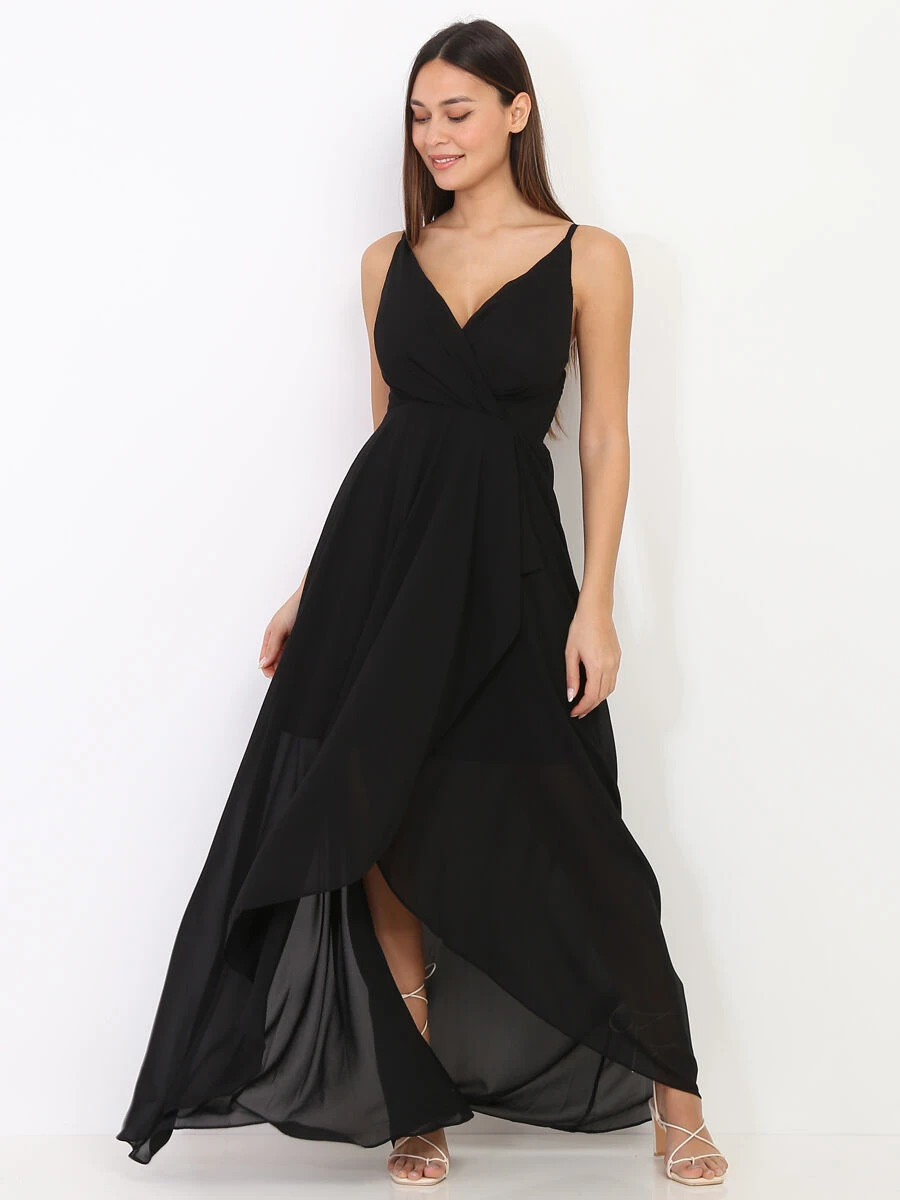 Robe de soirée longue à bretelles réglables.