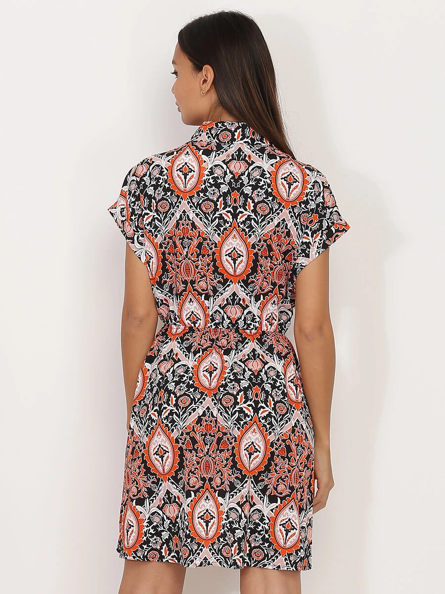 Dotée d’un élastique à la taille et de liens intégrés à nouer devant.