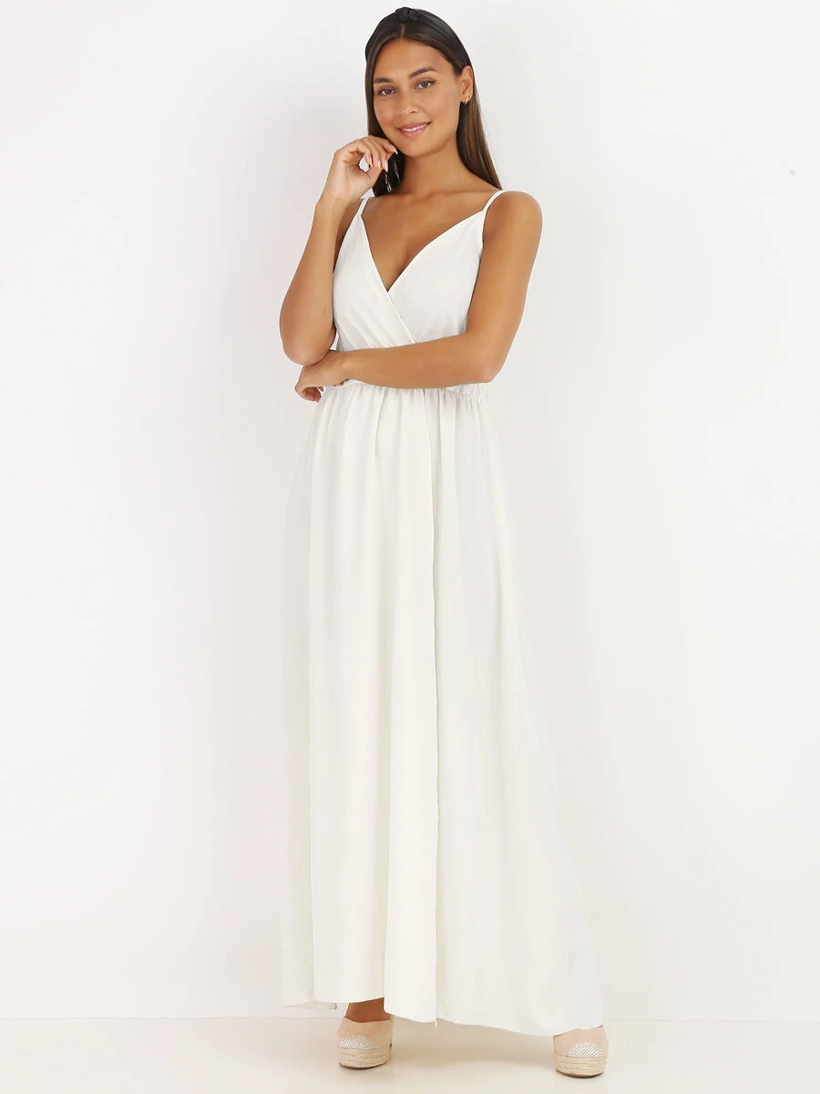 Robe longue fendue style portefeuille.