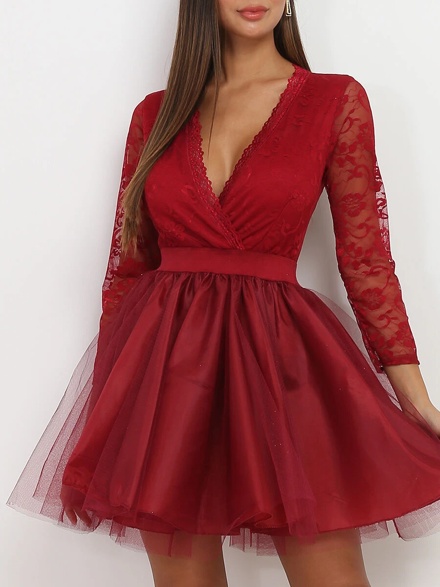 Robe patineuse avec jupon en tulle et buste en dentelle.