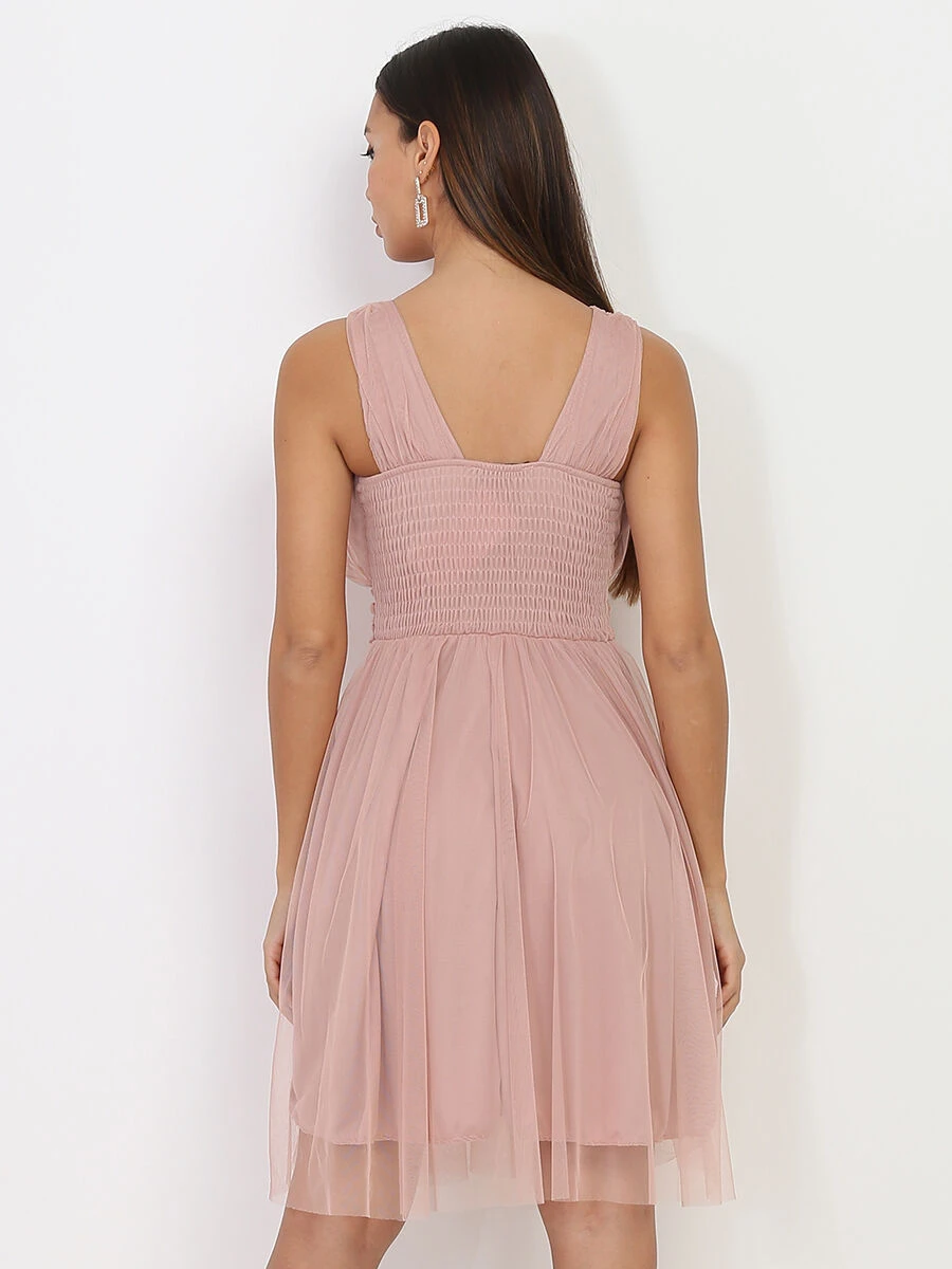 Robe patineuse en tulle, cintrée à la taille avec un anneau.