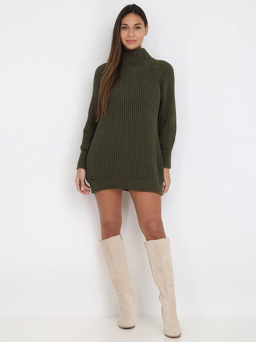 Robe pull courte en maille côtelée dotée de manches ballon.