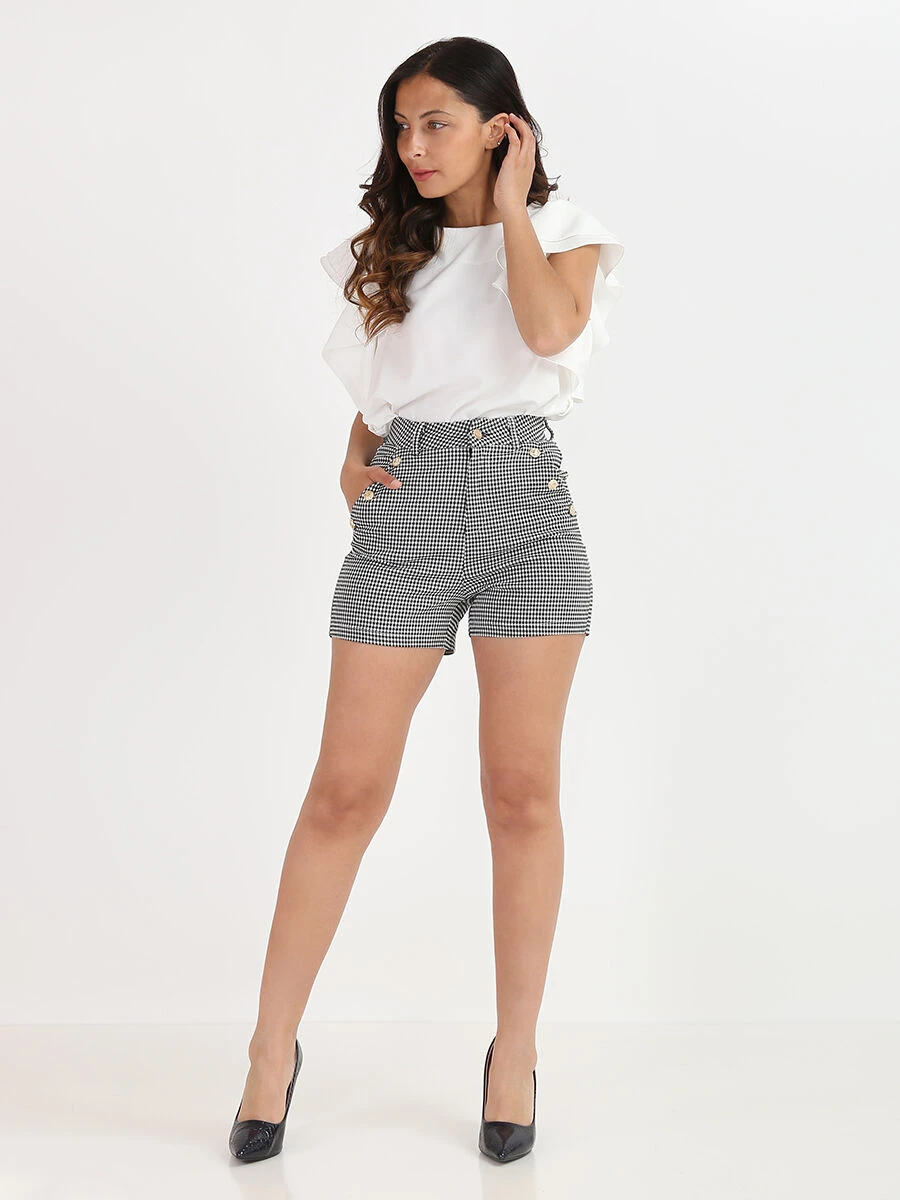 Short taille haute à carreaux.